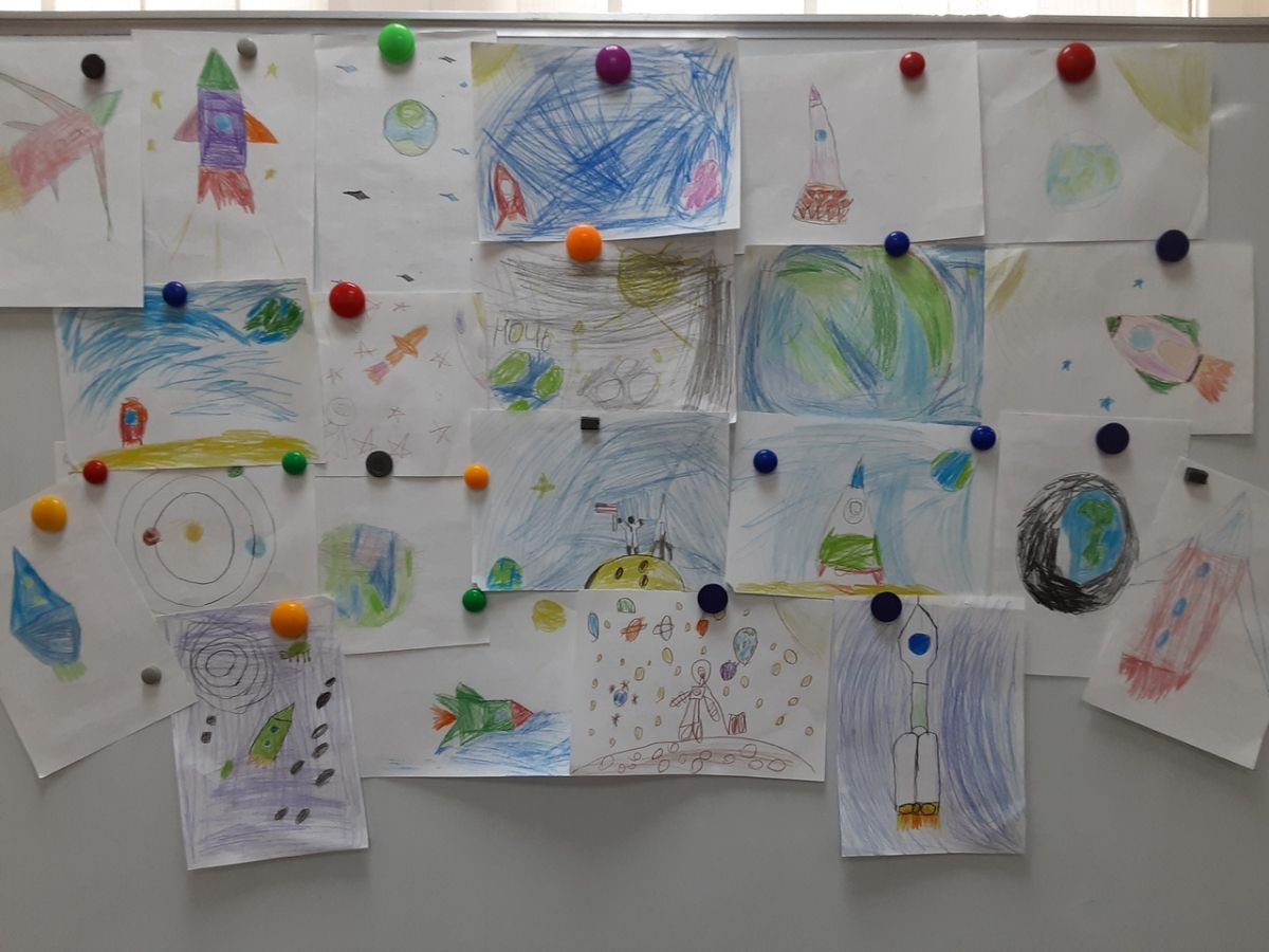Детям были предложены такие задания, как: космические ребусы, шифрограммы (знаменитая фраза Гагарина Ю.А.), кроссворды, нарисовать космический корабль. Все команды справились с предложенными заданиями, проявив смекалку, знания, умение работать в команде.