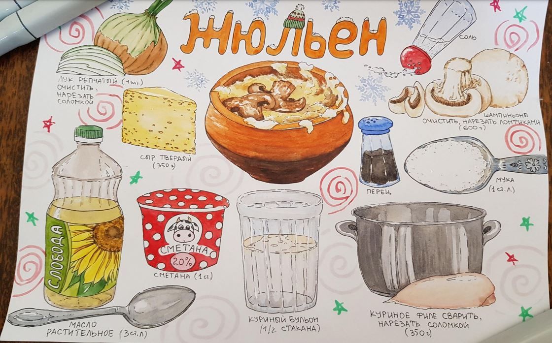 Так же, предлагаю всем родителям, желающим проявить свои таланты в скетчинге присоединиться к детям, выбрать рецепт, сделать творческую работу и выложить в комментариях к этому посту, что у вас получилось)))).