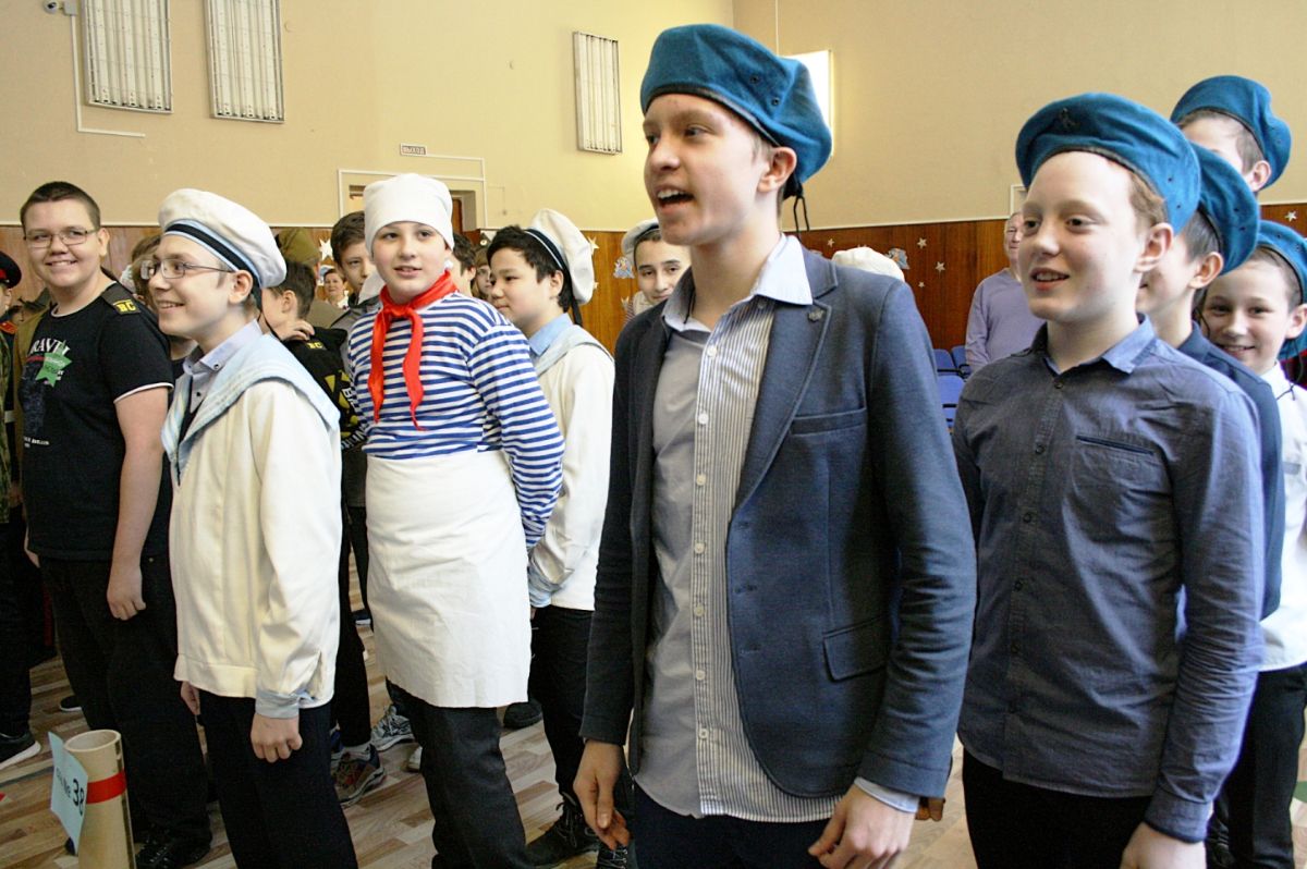 - «Строевая подготовка» - команды хором пели куплет песни и маршировали.